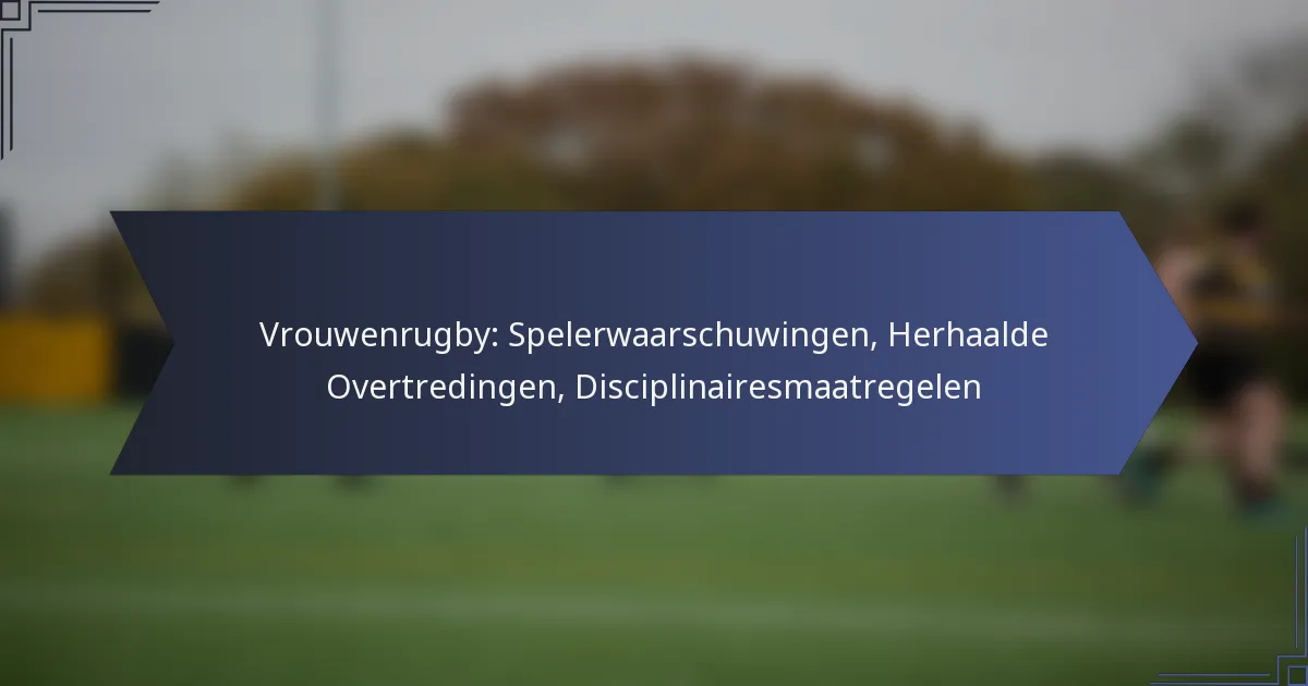 In het vrouwenrugby zijn disciplinaire protocollen essentieel voor het waarborgen van eerlijk spel en de veiligheid van spelers. Deze protocollen omvatten een systeem van waarschuwingen voor spelers bij overtredingen, wat invloed kan hebben op de geschiktheid en grondige documentatie vereist. Herhaalde overtredingen kunnen leiden tot strengere disciplinaire maatregelen, wat zowel de status van de speler als de algehele prestaties van het team beïnvloedt.